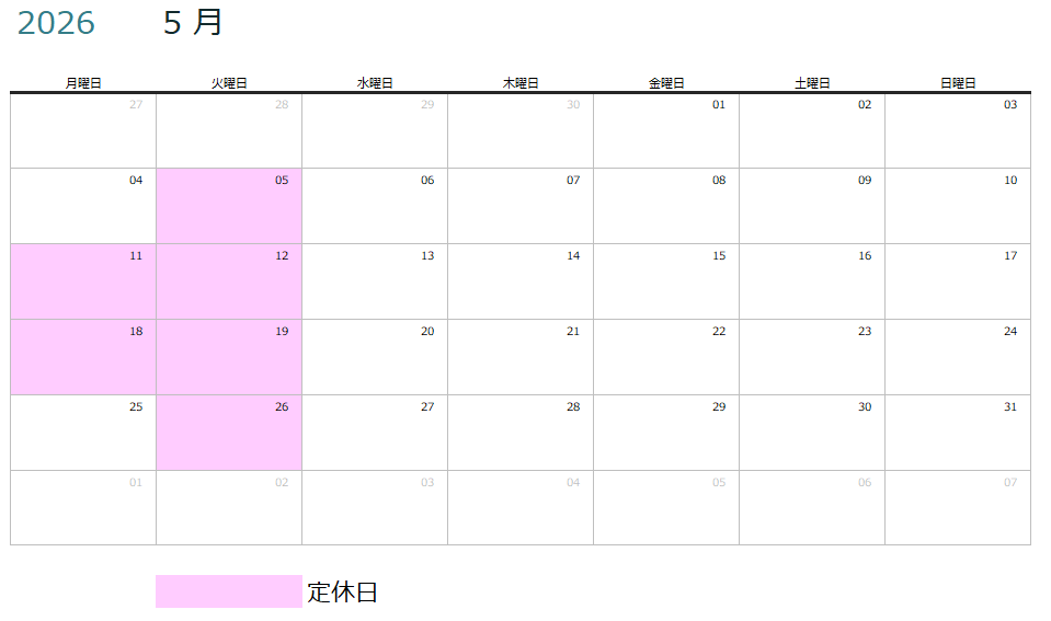 定休日カレンダー